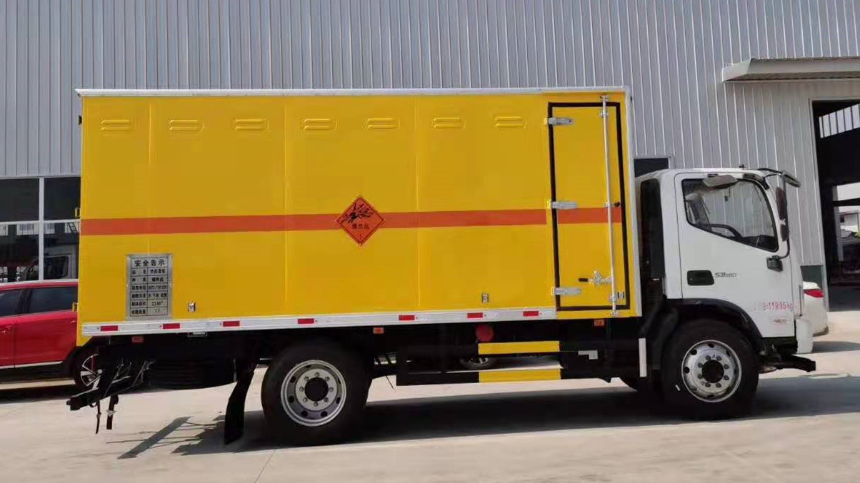 該車適用于運輸危險品,隨底盤選裝駕駛室,選裝右側(cè)不開門;危險貨物運輸車輛的類型(EX/Ⅲ),廂體頂部封閉,不可開啟,運送爆炸品的品名:黑火藥,壓縮黑火藥,電(非電)引爆雷管,爆破炸藥,導(dǎo)爆索,點燃導(dǎo)火索;運送爆炸品的項號:1.1D,1.1D,1.1B,1.1D;安全裝置為導(dǎo)靜電帶,用于防止靜電;僅采用底盤子午線輪胎和帶ABS的底盤,該車前輪安裝盤式制動器,前置排氣管,裝配限速裝置,限速80km/h;安裝帶有衛(wèi)星定位功能的行駛記錄儀;側(cè)防護和后防護裝置材料材質(zhì)為Q23**碳鋼,側(cè)防護與箱體底板和副梁焊接連接,后防護裝置與車架采用焊接連接。后防護截面尺寸(mm):120×50,離地高度為500mm。整車長度/軸距/后懸對應(yīng)關(guān)系為(mm):7030/3800/2**。僅采用發(fā)動機F3.8NS6B156對應(yīng)的油耗值(L/**km)為:20.81。ABS系統(tǒng)**器型號/生產(chǎn)企業(yè):ABS-E/威伯科汽車**系統(tǒng)(**)有限公司,ABS-VI·E/廣州瑞立科密汽車電子股份有限公司。轉(zhuǎn)向輪裝備輪胎爆胎應(yīng)急防護裝置。隨底盤選裝駕駛室。 |
